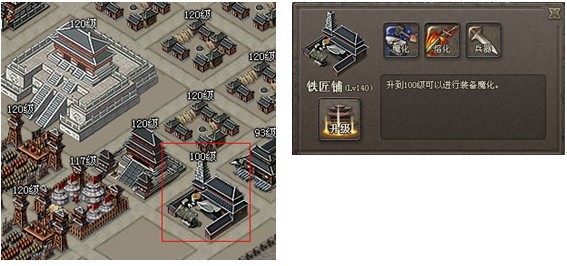 n. 主城到101级 获得铁匠铺。可以用玉石魔化装备以及熔化装备获得玉石