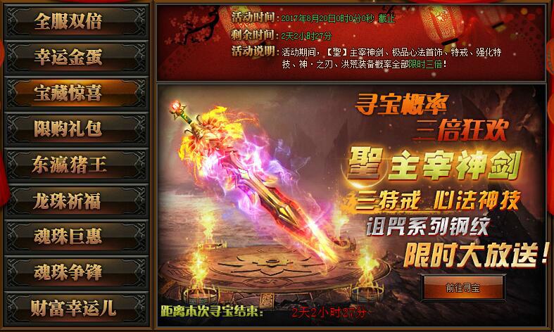【活动详情】:活动期间寻宝概率限时三倍,极品道具等你来拿~
