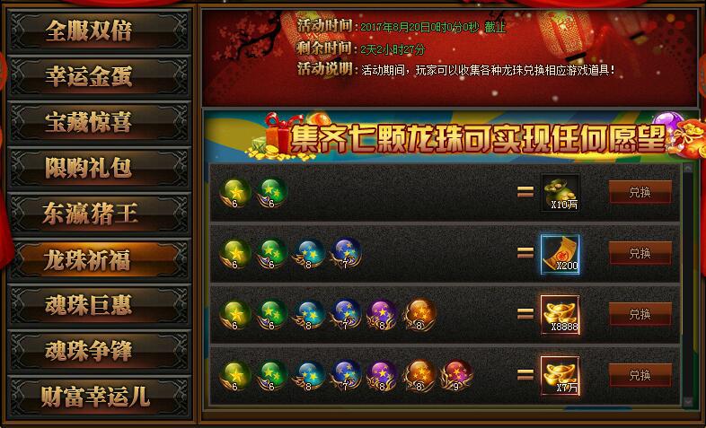 【活动详情】:活动期间集齐七颗龙珠可实现任何愿望,玩家可以收集不同的文字,兑换相应的游戏道具。