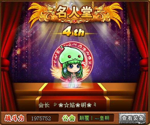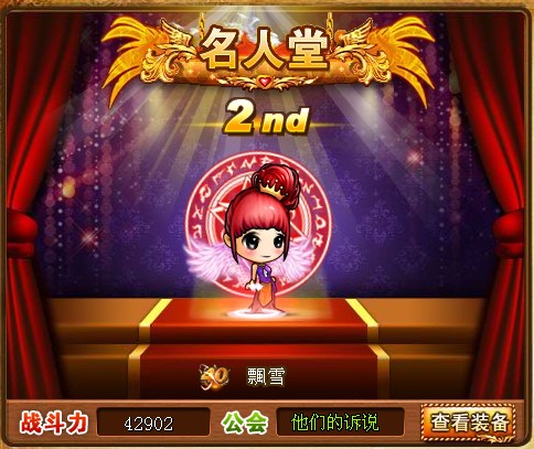 下面该是公会会长的代表出场了,想起以前小编在的那个公会会长就是一位女强人,等级是会里最高的,装备是会里最强的,当然战斗力就更不用说了。下面这位乃是7k7k《弹弹堂》公会的老大,看看她的强悍吧~