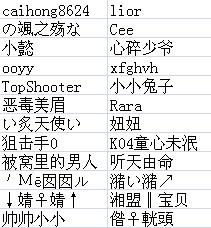 排名 | 昵称 | 等级 |