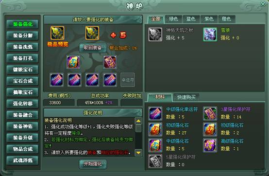 古语有云,玉不琢,不成器。一块未琢之璞玉,必须经过精雕细琢,才能散发出耀眼的光芒。装备也是这样,耐心挖掘和锻造,才会达到刀枪不入、所向披靡的境界。拥有升级装备之人,便可以杀人于无形之中,被历代武术家视为至尊。装备强化,让你和你的装备一起变强。装备强化对提升实力的作用不言而喻,是通往极品装备的必经之路。