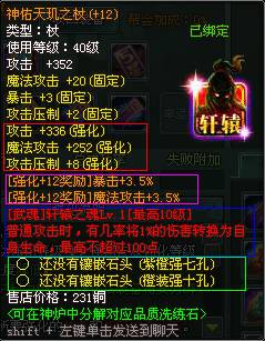 | 普通无强化神佑天玑之杖 | 强化+12神佑天玑之杖 |