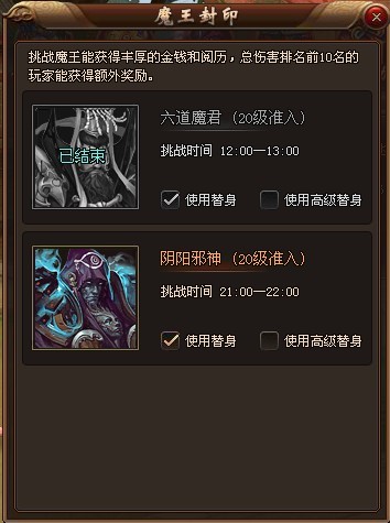 挑战时间 12:00-13:00 六道魔君(Lv.20) |