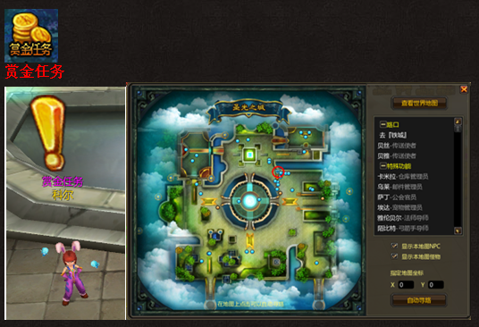 每日玩家可以在主城NPC科尔处领取赏金任务,赏金任务为玩家提供大量的银币,获取银币数量随着等级提高而提高,活动内容为消灭指定的怪物150只,任务随机产生,要求杀死怪物是与玩家等级段相符合的怪物,每天可完成2次。