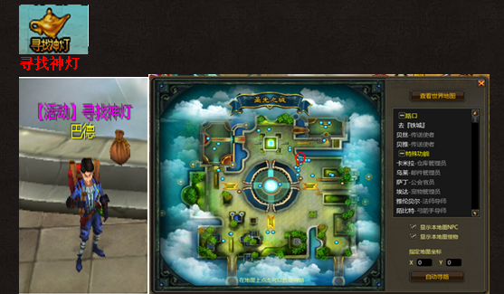每周1、4系统会开放寻找神灯活动,该活动在主城的魔术师巴德处领取,完成活动将获得大量经验。