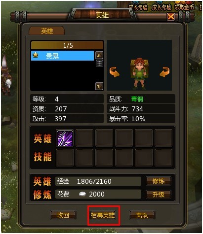 PS:“英雄”按钮需要玩家到达一定等级,完成任务开启