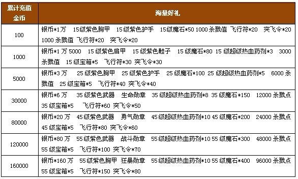 活动内容:截止到活动时间结束,累积充值将会获得丰富奖励