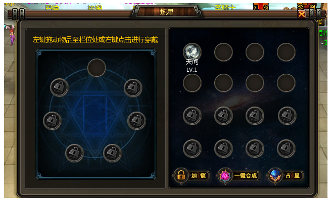 1、当玩家到达19级时开启占星系统,玩家通过消耗星运或金币进行占星,从占星中得到带有属性的星运可以穿带在人物身上增加人物属性。