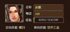战斗特性:孙膑是高攻武将,主动技能横扫可以攻击两边的部队,被动技能狂热之血士兵越少,攻击越高。所以需要根据对方的阵型,把孙膑优先放置于有利于突破核心障碍的位置,以孙膑作为突破点的核心是调兵遣将的最佳选择!