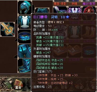 腰带 1件 10星 (破击)孙 或 庞专用;