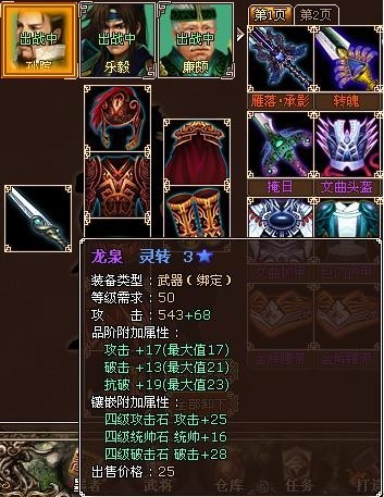 吕和孙是主攻手,用好武器毋庸置疑。信 和 扁 的攻击高低 直接关系到 加血量,所以也要注重。