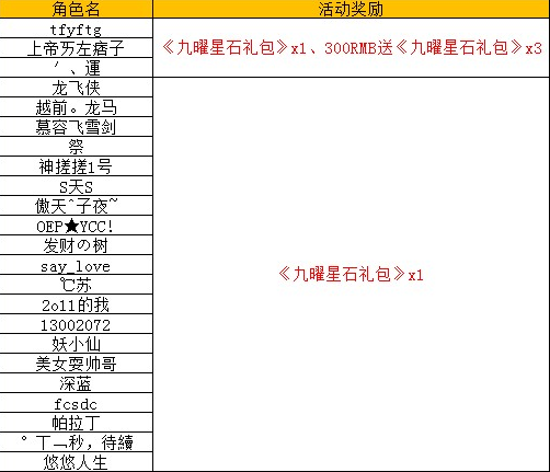 7k7k《飘渺西游》周末充值回礼活动奖励名单
