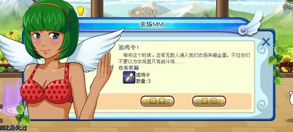 背景故事:每到新年,渤岛通往奇妙农场的大门就会打开,据说农场里的“战斗鸡”会下金蛋。金蛋虽然不能吃,砸开以后却会得 到想不到的宝物。