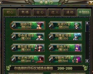5:BOSS系统. BOSS挑战需要通过最左边的传送门选择传送到相应的BOSS区域才能进行挑战。