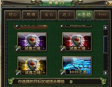 6:试炼之地与BOSS之家.个人闯关副本,无等级限制,该副本不能组队进行,每天只能通关一次,但是中途是可以退出的。通过最左边的传送点选择活动后点击进入。