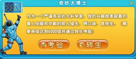 1、6000级的玩家可以找奇妙广场的“奇妙大博士”进行转生。