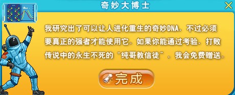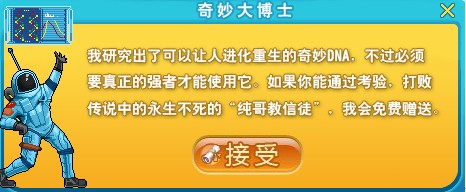 2、转生前需要先完成转生考验任务,拿到转生道具“奇妙DNA”。