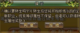 6、转生以后,等级为新职业1级,以前6000级的属性不存在,但是可以获得转生属性、抗性奖励。一转奖励的属性和抗性再以后的转生中会继承。
