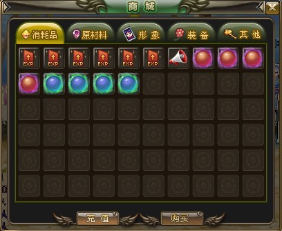 1:商城道具:商城出售消耗品,形象,装备等物品