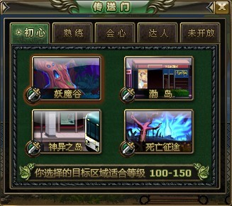 到城镇以后,点击传送门后先在“初心”“熟练”“会心”“达人”里选择难度,然后选择要去的战斗区域,能够适应所选战斗区域的等级会在下方显示。