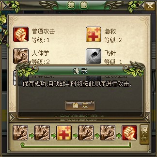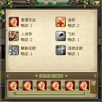 4.学会技能后,把技能图标拖放到“自动战斗技能编排器”里,在自动攻击中就能使用技能。空白的栏位默认为普通攻击。