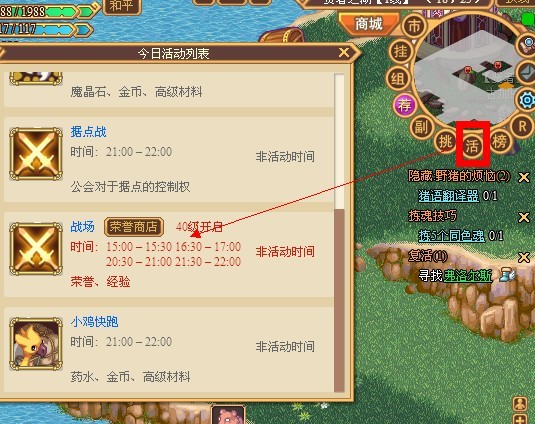 1、战场活动开始期间玩家通过雷达地图“战”开始报名