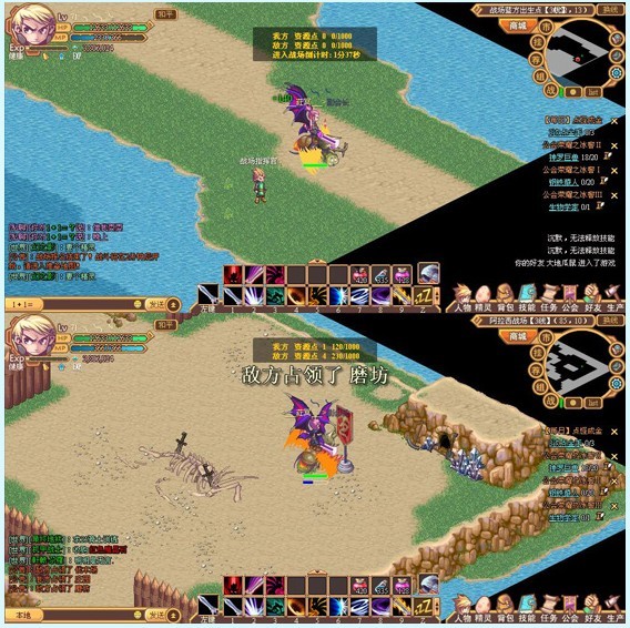 3、活动开始后,在准备地图的玩家通过与该地图中的NPC报名进入战场,如果再次期间玩家没有与NPC对话进入地图,进入时间过了,这些玩家就会脱离准备地图,无法参与战场了。