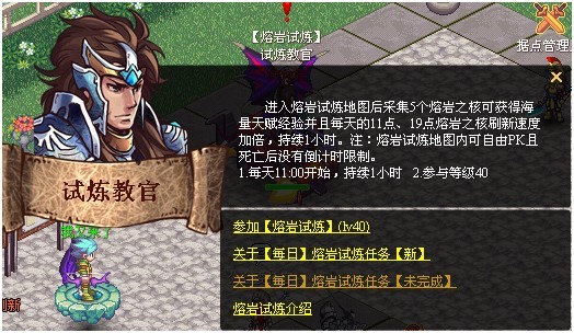 熔岩试炼地图内,可自由PK且死亡后没有倒计时限制。只有实力强大的玩家或团结一心的玩家团队才能从容不迫的完成该任务。