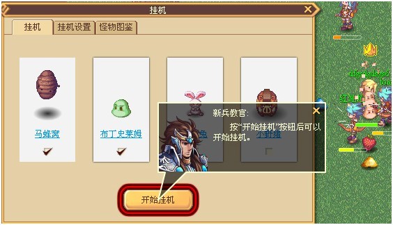 仙境幻想游戏中的挂机又两种方式,一种是自动寻路和击杀对应怪物完成任务,另一种是玩家自主设定当前地图中需要打的怪物进行挂机。 任务挂机:玩家游戏界面的右侧,有一个任务跟踪面板,只要点击这个面板上的名字,就可以自动过去击杀了。完成任务后,会有一个提示,然后再点击任务跟踪面板上出现的NPC名字,就可以自动寻路回去交任务了。 自由挂机:玩家在达到预定挂机地点后,点击右上角雷达附近的挂机按钮打开估计界面。通过勾选界面中对应的怪物,来设置需要击杀的怪物种类。完成后点击开始挂机。
