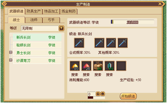 每个档次的装备都有一个对应生产等级,当玩家合成时物品低于生产等级一级则生产所获经验量减半,若低于两个等级则不再获得经验。
