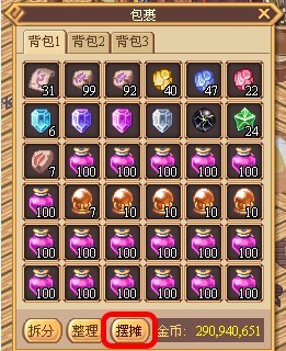第一步:打开角色背包,在背包窗口的下方有一个摆摊按钮,点击摆摊按钮玩家可以打开摆摊设置窗口。