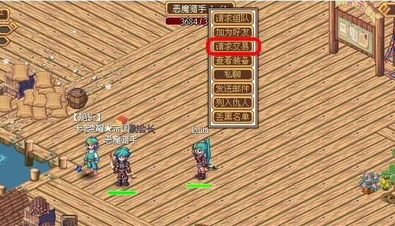 游戏中玩家之间的交易可以通过点击游戏中的角色人物选中目标玩家,点击在屏幕上方中间目标名称后的下拉菜单中选择“请求交易”按钮,申请与该玩家目标进行交易。