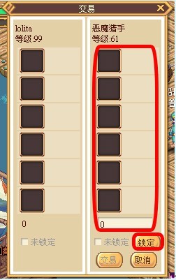 当玩家确定交易栏物品并点击锁定后,在取消锁定之前,交易栏的物品不能更换。在双方都锁定交易栏之后,玩家才可以点击交易按钮。