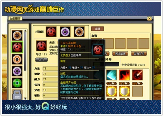 “血继限界”出世惊天动地,小忍世界又将风云变幻。相信通 过上面的介绍,全新“血继限界”的巨大魅力,已经让你心痒不已。也许,继承血继の力的你,就是下一任的“影”哦!