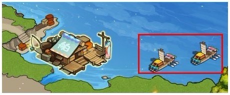 点击你要掠夺玩家封地中船坞旁边的船只,即会弹出是否攻击该船提示。(若该玩家没有委派船只,则不会出现小船)