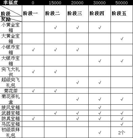 特别说明:以上幸福度为本服所有玩家一起努力通过祝福累计获得的幸福度总值。