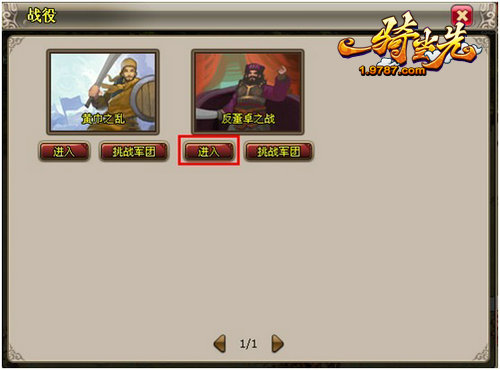 一、点击主界面的“战役”按钮入口进入战役面板,进入你想要挑战的军团。只有你在主线任务中顺利通关的战役才会在战役界面显示。