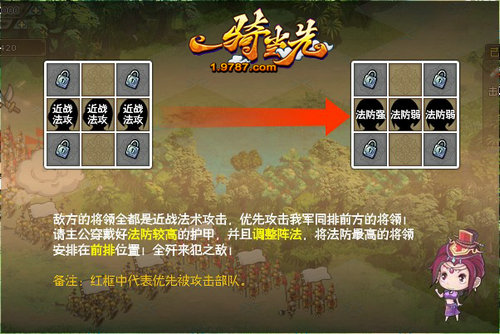 由此可见,阵法布置尤为重要。你必须要弄清楚敌我双方的武将职业属性及攻击规则,并根据对方的站位阵型,合理选择阵法并排兵布阵,才能将阵法的功能发挥到最大效果!除此之外,武将的综合能力,武将技能相克等因素你也必须考虑到其中。