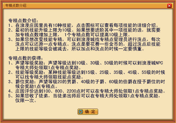 洗点是为方便大家重新选择游戏技能,可以在浪漫城找到“专精点管理员” ,