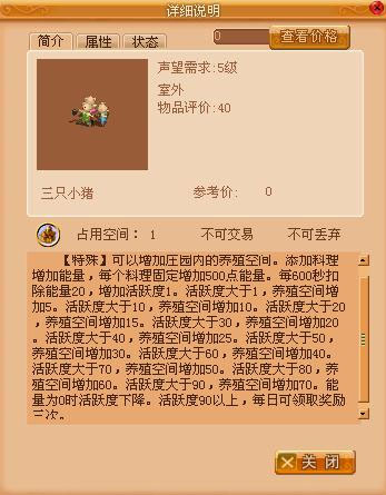 五:祭祀成功后,出现养殖精灵【三只小猪】。三只小猪接受搬迁,每个庄园只可安装一个。