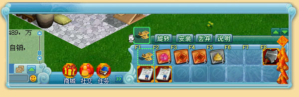 在房屋内选中背包内要进行安装的工具,在背包上部出现工具状态栏,点击旋转可以转换工具拜访方向;选择安装可以进行合成工具的安装;选择说明可以查看合成工具的所有相关属性;选择丢弃物品将会消失。