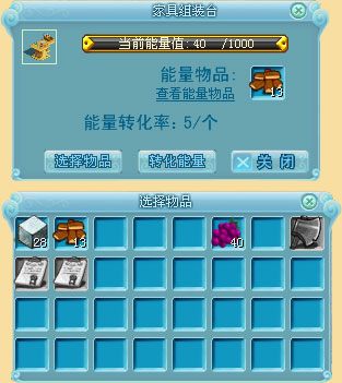 将能量物品拖动到添加能量的窗口中或者在界面上点击选择物品选择相应的转换物,点击“转化能量”。在当前能量值中可以看到当前能量值。
