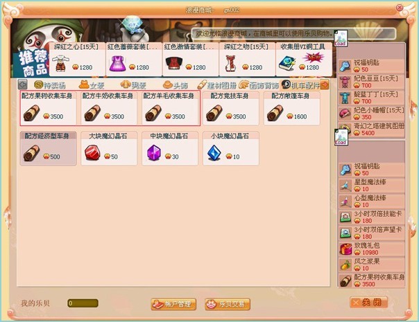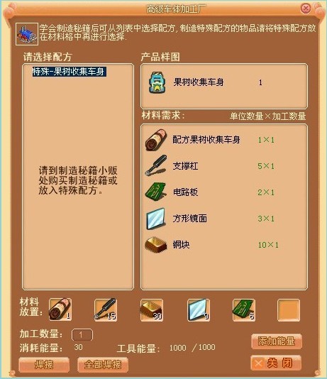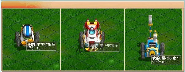 (1)车体制造:在商城中购买相应的车体配方。(配方果树收集车身、配方羊毛收集车身、配方牛奶收集车身)