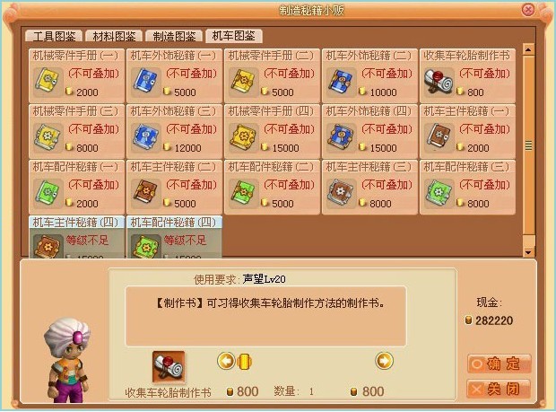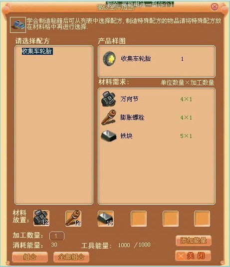 (3)玩家可以在制造秘籍小贩中购买到“收集车轮胎制作书