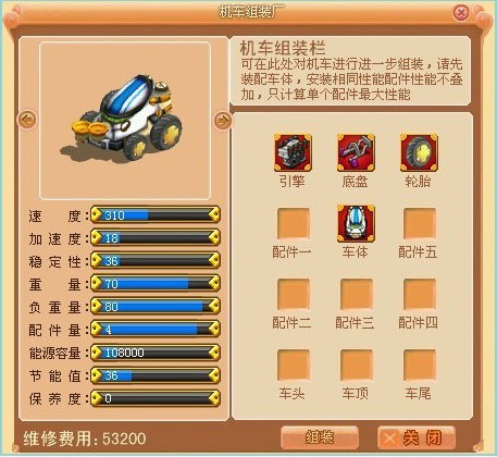 在机车的车体类配件中增加实用性功能,当机车装配有此类配件,即可获得相应的功能,主人在驾驶中可使用。目前推出三部功能车体——果树采集车,牛奶采集车、羊毛采集车。
