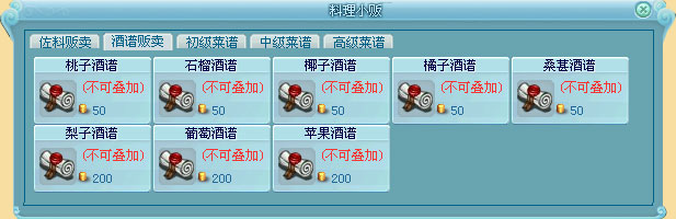 料理小贩:可以购买到部分酒谱和菜谱。
