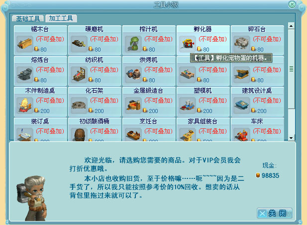 首先你得需要一台孵化器,可以去找各小镇的工具小贩购买。