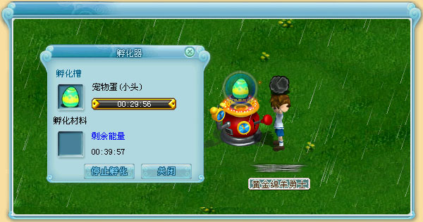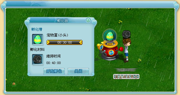 孵化开始之后呢,你就可以暂时不用守在孵化器旁边了,不过可要注意材料耗尽时记得补充添加材料哦!否则孵化中的宠物蛋会慢慢冷却,之前孵化进度就倒退的哦