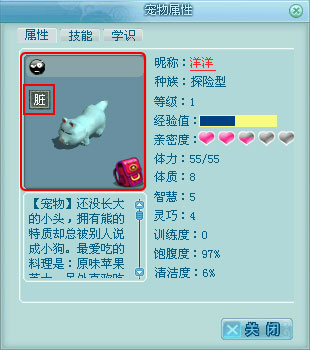 如果一直忽视宠物狗,亲密度降低它就不乐意做动作,也会伤心的离家出走,宠物卡片上出现红色“逃”字。这时可以带着宠物卡片向浪漫城的“宠物招领员”进行求救,不过是要付出代价的。与她对话后点击显示出的宠物名字,确定,宠物卡片恢复为显示“封”的状态。